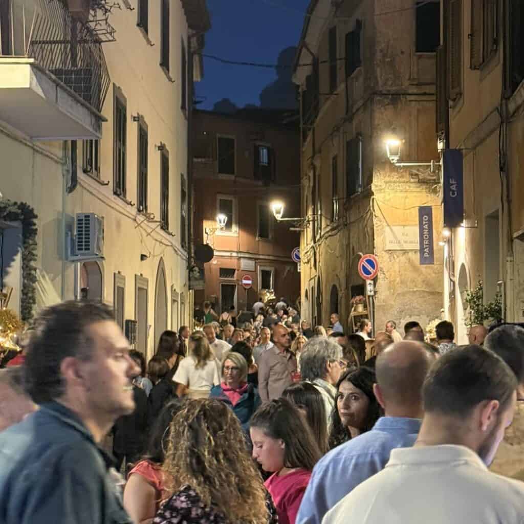 Come non possiamo dimenticare tutto il gruppo dei soci dell’ass.ne ArtisticaMente APS sempre di supporto alle attività della pro loco e la bravissima Cinzia Canini per la maestrìa e l’accurato allestimento floreale realizzato anche grazie al supporto della signora Paola del ristorante Vini e cucina che ha prestato le suggestive sedie a supporto della scenografia, l’associazione Astronomitaly che anche quest’anno nel bel giardino della chiesa di san Pietro e Bartolomeo hanno reso visibile il cielo stellato, l’artista Palmiro Taglioni che con le sue opere ha reso la piazza delle SS. Stimmate ancora più apprezzata, Dott. Ernesto Mellone e l’International Sommelier Academy e ai suoi sommelier, preparatissimi e prodighi nello spiegare i dettagli del vino delle cantine partecipanti, l’Atelier “la Sartoria delle idee in via sant’Antonio, con il DJ Simone Maroncelli, un punto di degustazione, ma anche un luogo dove artigianato, cultura e arte si sono incontrate con Alessandra Cerini, Antonio Moghetti e Beatrice Morsilli, la direttrice del museo dott.ssa Raffaella Silvestri per l’apertura straordinaria del museo civico e paleontologico e per l’area archeologica delle SS. Stimmate, la Cover Band BLUES FOR PINO che ha fatto emozionare e ha coinvolto il pubblico presente.