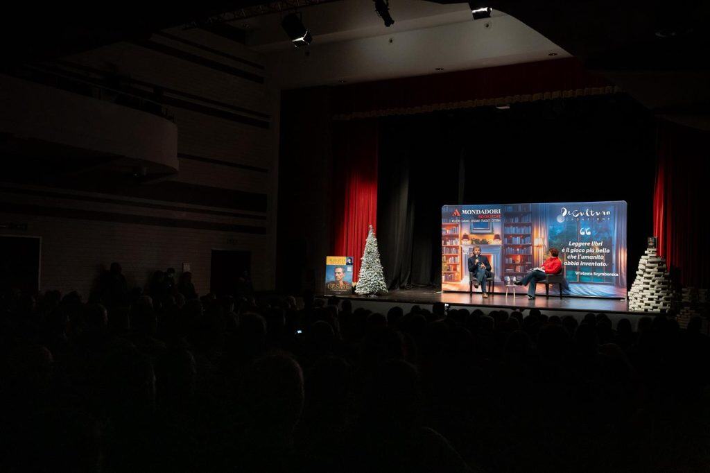 Alberto Angela ha offerto anche uno sguardo più intimo e umano su Giulio Cesare, raccontandone le luci e le ombre: “Cesare a un certo punto passa al lato oscuro, comincia a uccidere. Era un ambizioso, fa tutto per ambizione politica, soldi, o per diventare famoso”. Accanto a questo lato spietato, però, Angela ha evidenziato anche la forza vitale del personaggio: “Il lato buono è che è pieno di energia e di vita e insegna qualcosa, come ad esempio che nelle difficoltà devi organizzarti e credere in te stesso, in modo razionale, usare la mente, e buttare il cuore al di là dell’ostacolo. E Cesare lo fa continuamente”. Lo ha descritto anche come “un uomo un po’ vanesio, voleva essere trendy, originale”, e ha aggiunto: “a volte Cesare può sembrare talmente comune che inizi a volergli bene”. Uno dei passaggi più suggestivi del libro, ha raccontato Angela, è il momento in cui Cesare, diretto verso il Rubicone all’alba, si perde nella nebbia e chiede indicazioni a un pastore: “A noi è arrivata la parte eroica, ma ci sfugge la realtà quotidiana”. Quella di un uomo solo, capace di grande leadership eppure profondamente umano, segnato da dolori come la morte della figlia, perduta in occasione del parto insieme alla nipote neonata. Nella vita, però Cesare “era solo e doveva sempre vincere, agli occhi dei suoi soldati e di tutti. È stato un catalizzatore, un leader. È importante perché il leader è persona che fa sentire tutti grandi. Ma chi poteva consolarlo la sera? Aveva un peso tremendo”.