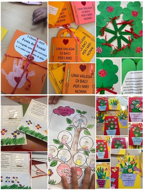 Un quadrifoglio per la fortuna, una valigia colma di baci, una carezza impressa in una mano, un albero che sussurra “le radici del mio cuore siete voi”, un prato fiorito dai semi della viola del pensiero e un vaso di fiori colorati pronti a sbocciare… Ogni creazione dei bambini è stata un abbraccio speciale, per dire ai nonni che il loro amore continua a crescere e a fiorire nel tempo. Un gesto d’amore che racconta chi siamo: la scuola primaria e dell’infanzia di Colle Perino, una Green School dove ogni giorno impariamo che prendersi cura è il seme di un futuro migliore.