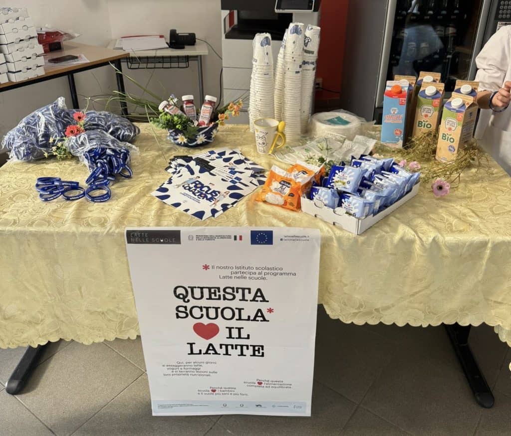 Nel plesso Zarfati è stato allestito un colorato banchetto per accogliere gli alunni e guidarli alla scoperta del latte. I bambini hanno potuto gustare il latte fresco, lo yogurt, lo stracchino e la mozzarella della Centrale, insieme a un’alternativa per tutti: il succo di melograno, pensato appositamente per chi ha intolleranze. È stato un momento di condivisione che ha unito gusto e massima inclusione.