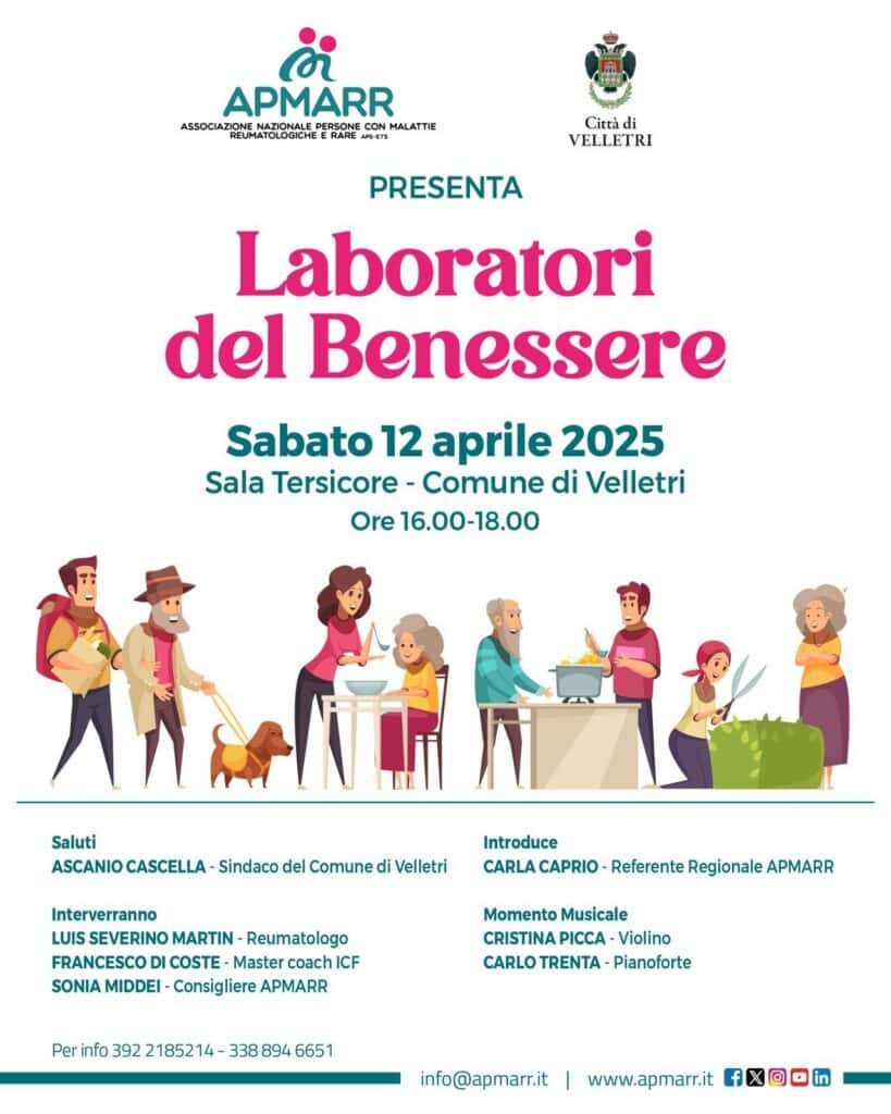 Per partecipare ai laboratori, è necessario iscriversi e si potrà farlo già il 12 aprile presso il tavolo delle volontarie durante l’iniziativa al Comune. La partecipazione è gratuita e aperta a tutti i pazienti con diagnosi di malattia reumatologica o rara e ai loro caregiver.