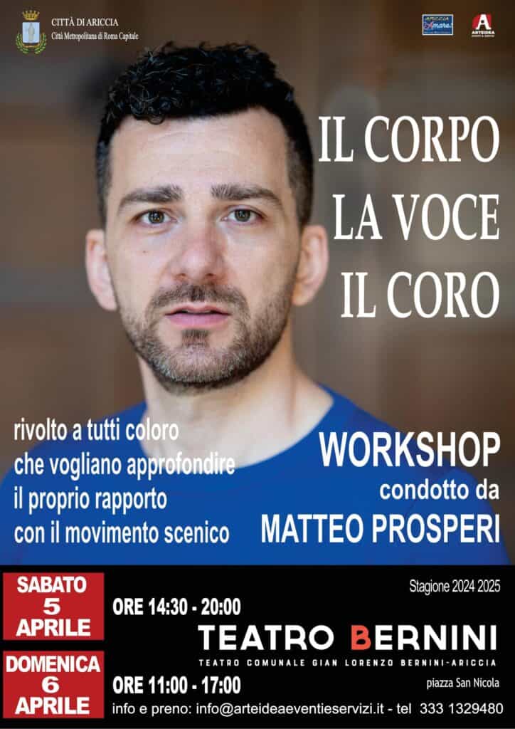 Il primo week end del mese, sabato 5 e domenica 6 aprile, nel Teatro di Piazza San Nicola sarà di scena il workshop di recitazione “Il corpo, la voce, il coro” condotto da Matteo Prosperi. Il corso si rivolge a tutti e a tutte coloro che vogliano approcciarsi alla materia teatrale e approfondire il movimento scenico e l’uso della voce. In due giorni di full immersion saranno potenziati il corpo e la mente, con esercizi provenienti dalla danza e dall’acrobatica che sono il frutto delle esperienze formative e professionali del docente: passaggi a terra (floorwork), capriole, ruote, prese, cadute saranno il nostro materiale di studio. L’obiettivo è quello di scogliere il corpo, renderlo pronto e reattivo all’atto teatrale e, allo stesso tempo, sprigionare la fantasia e la sensibilità delle attrici e degli attori per poi affrontare la questione recitativa. Si richiede un abbigliamento comodo e una predisposizione al lavoro fisico.