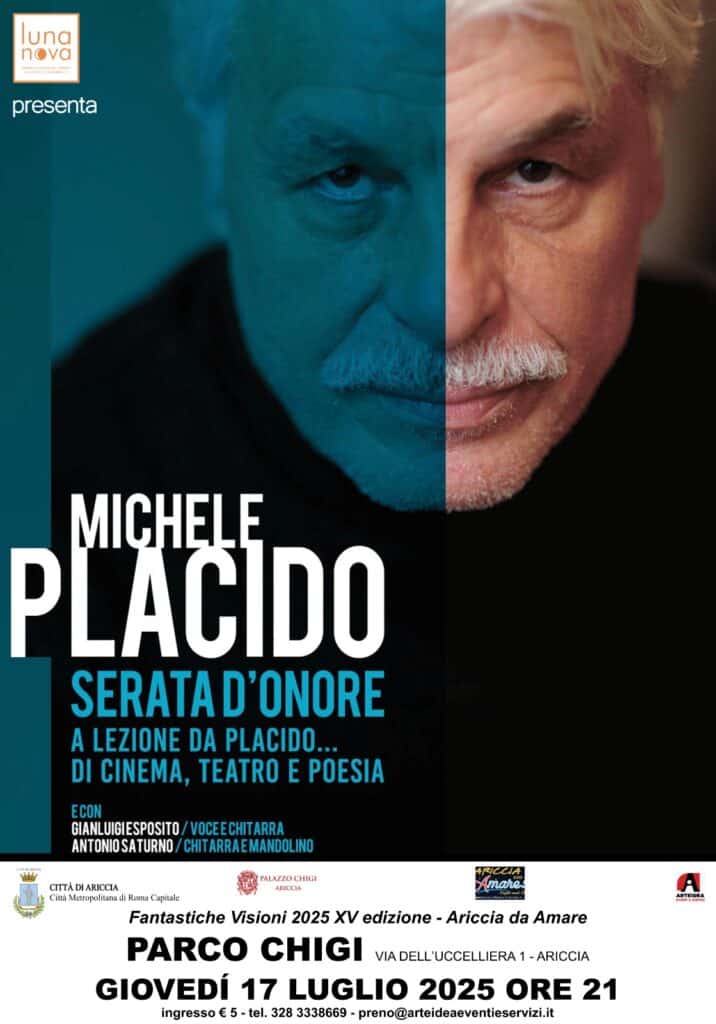 Prossimo appuntamento da non perdere con “Fantastiche Visioni 2025” giovedì 17 luglio alle ore 21, quando al Parco Chigi di Ariccia, arriverà Michele Placido con lo spettacolo “Serata d’onore”. Un viaggio tra cinema, teatro e poesia, accompagnato dalla musica dal vivo di Gianluigi Esposito e Antonio Saturno. Biglietto d’ingresso: 5 euro.