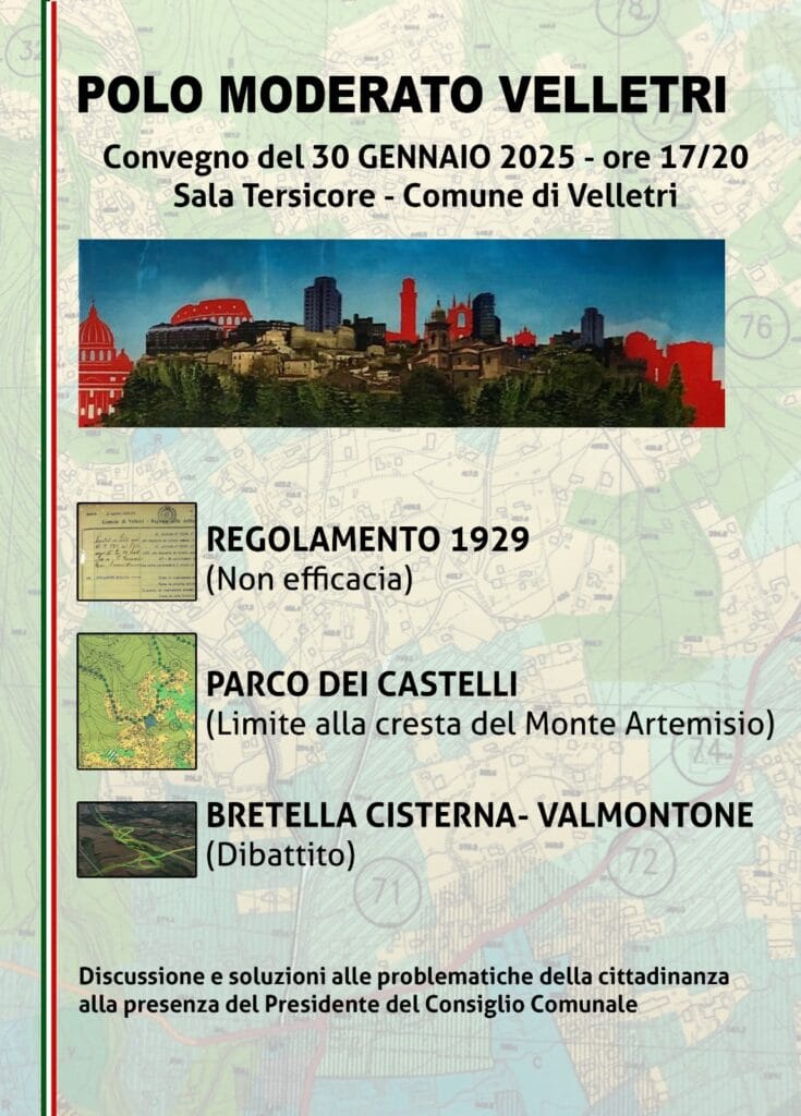 Velletri, in Sala Tersicore con il Polo Moderato per discutere di Parco, Bretella Cisterna Valmontone ed urbanistica
