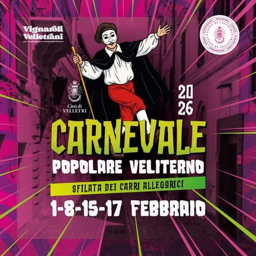 Carnevale Veliterno 2026 con dieci carri allegorici e gruppi mascherati