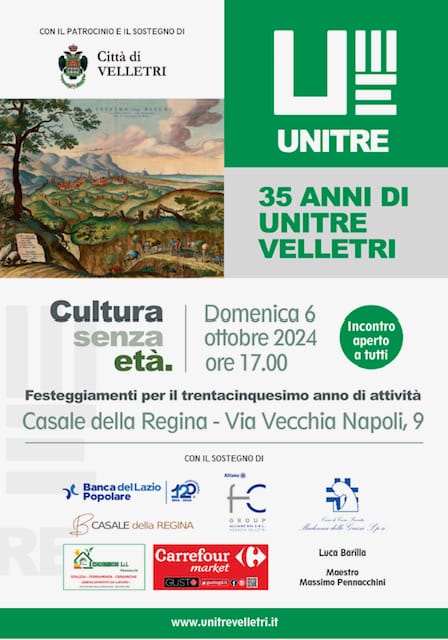 L’Unitre di Velletri compie 35 anni: domenica 6 ottobre i festeggiamenti al Casale della Regina