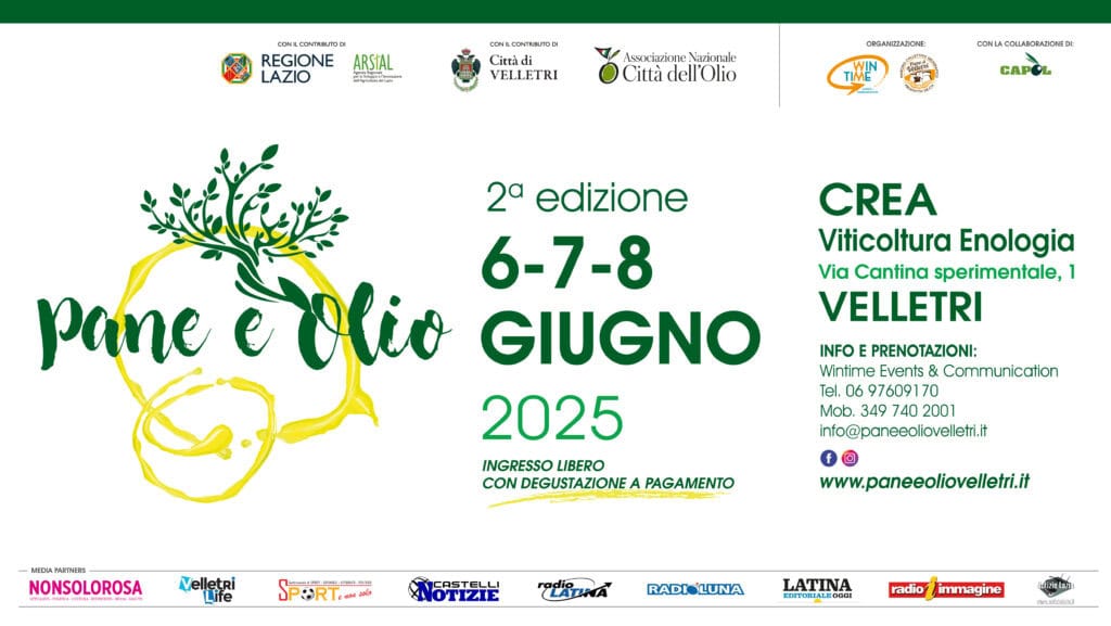 Velletri si prepara a riaccendere i riflettori su uno degli eventi più attesi da chi ama il buon cibo, la cultura del territorio e le atmosfere autentiche: “Pane e Olio” è ormai alle porte. Da venerdì 6 a domenica 8 giugno 2025, l’appuntamento è nella splendida cornice della Cantina Sperimentale CREA (Via Cantina Sperimentale, 1), per un’esperienza che fonde il gusto alla conoscenza, la musica alle emozioni, la tradizione all’innovazione.
