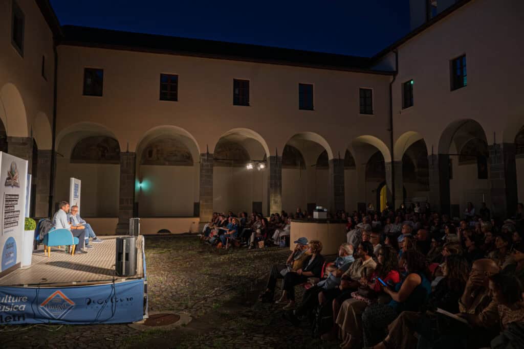 Dopo l’apertura con le degustazioni enogastronomiche e la presentazione della Cantina ospite della serata, con l’intervento di Massimo Morassut del CREA, e un momento di parole e musica con Silvia Ciriaci e Roberto Candidi, Lumera è salito sul palco tra gli applausi per dialogare con Daniele Dibennardo, coinvolgendo il pubblico in un profondo viaggio nel tema del “lasciar andare”.