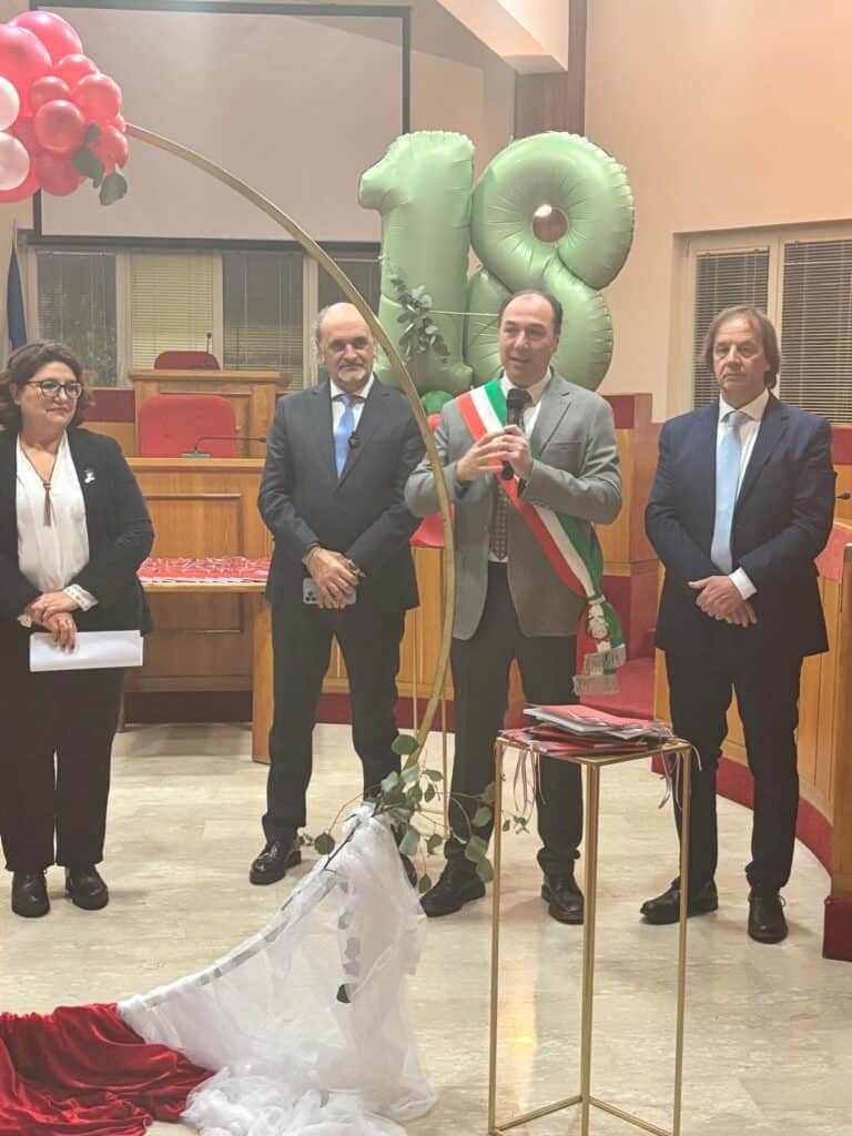 Le ragazze e i ragazzi, ospitati nella Sala del Consiglio comunale, sono stati chiamati singolarmente e hanno attraversato un gigantesco anello decorato per l’occasione con i colori del tricolore per poter proseguire con la cerimonia. Il gesto ha voluto simboleggiare e celebrare il passaggio ad una nuova vita e ad un maggiore impegno civile e sociale. Per questo motivo, insieme alla tessera elettorale, è stata consegnata ad ognuno di loro anche una copia della Costituzione italiana, copie donate dal Senato della Repubblica. Il primo a prendere la parola è stato Natalino Ascenzi che ha voluto chiedere un applauso per i genitori dei ragazzi presenti. “La maggiore età è un traguardo notevole per poter esprimere le proprie idee, poter prendere le decisioni per il futuro, con il raggiungimento dei 18 anni si ha il mondo davanti. Voi sarete il futuro della nostra società civile, sociale e politica”. Il Presidente del Consiglio comunale ha perciò invitato i presenti ad alzarsi in piedi e a mettere una mano sul cuore per l’Inno d’Italia. L’Assessore Sabrina Verri è intervenuta con parole particolarmente sentite: “Devo dire che questo è il secondo anno che facciamo il battesimo civico e questo mi provoca una forte emozione. E’ importante conoscere quali sono i diritti e i doveri e per questo motivo abbiamo scelto di donarvi la Costituzione italiana da portare sempre con sé in quanto carta su cui sono scritti gli articoli necessari per la nostra vita e che ci consentono di non essere sopraffatti. Quest’anno ricorre l’ottantesimo anniversario dalla fine della seconda guerra mondiale ed è con grande sacrificio che i nostri nonni hanno lottato per raggiungere questa carta costituzionale. Il diritto al voto è oggi più che mai importante per avere la possibilità di esprimere il proprio pensiero”.