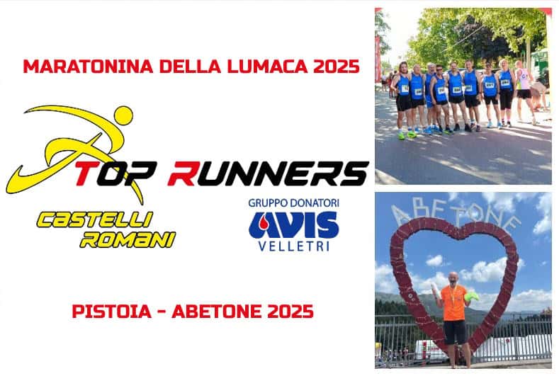 Risultati di rilievo per la squadra castellana in una domenica di grande podismo. Domenica 29 giugno 2025 ha segnato una giornata importante per la Top Runners Castelli Romani, impegnata su due fronti distinti ma ugualmente impegnativi: la 15ª Maratonina della Lumaca a Valmontone e la prestigiosa 48ª edizione della Pistoia-Abetone Ultramarathon, gara simbolo delle ultramaratone italiane.