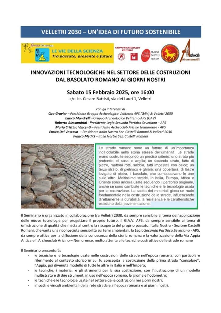 Con Velletri 2030 “Innovazioni Tecnologiche nel settore delle costruzioni: dal Basolato romano ai giorni nostri”