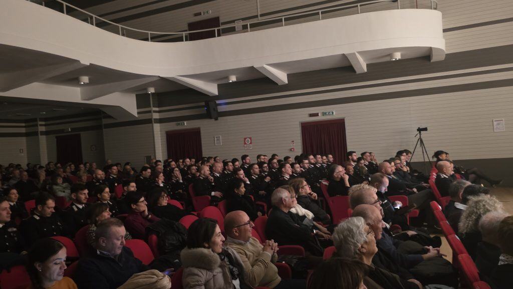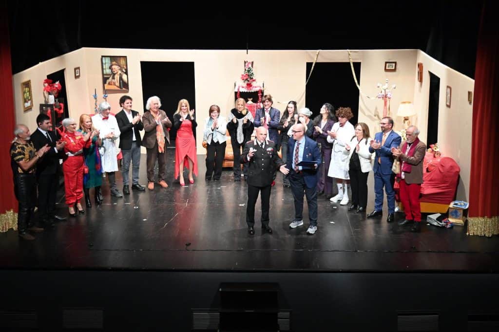 Nonostante tutto Santino a Roma trova l’anima gemella Susanna, la dolce Marta Cuccia che viene accolta con tanto entusiasmo in casa. I preparativi per il matrimonio fervono, ma arriva una telefonata che sconvolge l’allegra famigliola… Una serata all’insegna del divertimento della leggerezza ed anche uno spunto di riflessione sull’ipocrisia e gli stereotipi che ancora aleggiano in alcuni ambienti. Al termine, l’autore nonché regista Eugenio Ingribelli ha indossato i panni del Presidente ed ha ringraziato tutti i collaboratori che non si vedono, ma rendono lo spettacolo possibile, Gabriele Specchi, Maria Elena Ciancaglini, Nadia Vita, Rita Zaccagnini, e tutti quelli che si impegnano alacremente. Ha quindi preso la parola il Colonnello Caro Lecca acclamato dagli allievi, lo stesso ha ringraziato I Dilettanti all’Opera, specificando come questi eventi non possano che unire l’Arma ed il nobile scopo sia un esempio fulgido della missione dell’Arma sul territorio, ricordando come l’ONAOMAC sia un’organizzazione meritoria che raggiunge risultati concreti e tangibili in favore di chi ha perso un proprio caro appartenente all’Arma, nell’adempimento del dovere. Ha quindi ringraziato l’amministrazione comunale attore importante di questo connubio, fornendo sempre l’apporto logistico e la presenza istituzionale, presenti infatti il Vicesindaco Chiara Ercoli, gli Assessori Luca Quattrocchi e Cristian Simonetti, e la consigliera Candida Zazzaro ed in fine ha inteso ringraziare calorosamente il Luogotenente dell’Arma Giuseppe Todaro deus ex machina di tutto l’evento. Il Presidente, riprendendo la parola, ha voluto specificare come l’Arma dei Carabinieri sia il volto dello Stato sul territorio, sostenendo che sotto le divise ci sono le ali di angeli che vegliano su tutti i cittadini. Ingribelli ha voluto però specificare che non solo quello del 10 dicembre, ma tutti gli eventi che nel tempo hanno visto la comunanza tra l’Associazione e l’Arma sono frutto dell’instancabile lavoro e dell’entusiasmo di Giuseppe Todaro, colonna de I Dilettanti all’Oprea nonché Luogotenente dell’Arma dei Carabinieri, ed in segno di riconoscenza e di tangibile affetto, il decano dell’Associazione Pietro Giammatteo ha consegnato al Luogotenente Todaro una targa in ricordo della serata quale ringraziamento per tutto il suo impegno. Il Luogotenente Giuseppe Todaro, visibilmente commosso ha ringraziato per il gesto apprezzatissimo, ed ha inteso ringraziare tutti I dilettanti all’opera, il Comandante della Scuola, gli Ufficiali, i Sottufficiali e tutti gli appartenenti all’Arma presenti, oltre che le autorità ed il numeroso pubblico presente. Giuseppe Todaro ha chiosato con un gesto emblematico, inginocchiandosi, ha dedicato la serata a tutti i colleghi che nell’adempimento del dovere hanno perso il bene più prezioso, la vita, sostenendo che da lassù anche loro avranno apprezzato e riso di cuore alle battute della commedia.