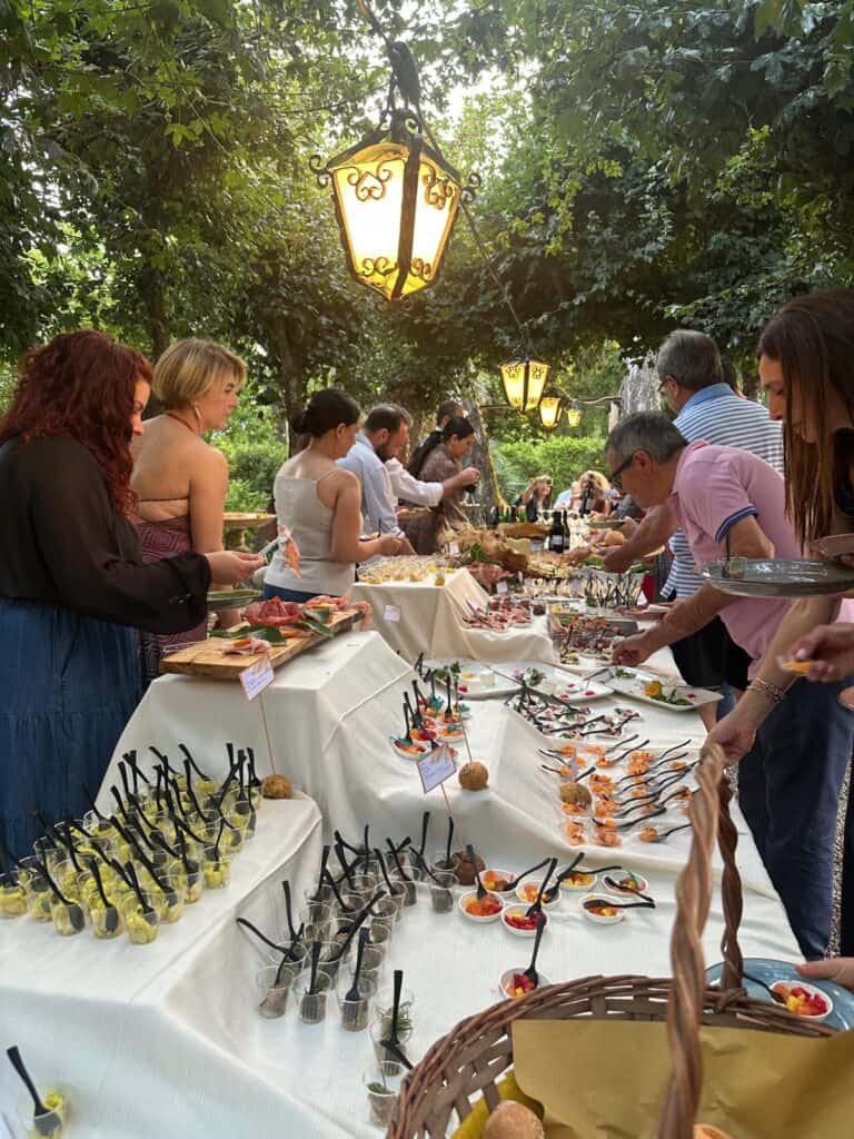 L’impeccabile servizio di catering è stato fornito dal ristorante La Forbice il cui fondatore, Stefano Cioccari, è socio e Vicepresidente dell’Associazione. Prodotti del nostro territorio di vera eccellenza, presentati e serviti con grande professionalità dallo staff de La Forbice. Ottimo l’abbinamento con i vini proposti dell’Azienda – Cantina Pennacchi, una realtà imprenditoriale in forte crescita, condotta da due giovani imprenditrici, Lucrezia e Marzia, che continuano a dare seguito e forza alla tradizione di famiglia. Un grazie speciale alle aziende Alusun, fabbrica di Tende da Sole di Lariano, Sitissimi, creazione e gestione di siti internet, Cinema Ambra Multiplex e A&S Solutions, Centro Multiservizi, CAF e Patronato, che hanno voluto fortemente sostenere l’iniziativa dell’Associazione. Un ringraziamento particolare ad Ilaria Palieri, “padrona di casa”, che ha messo a disposizione la splendida location della Tenuta dell’Inviolata, nota attività ricettiva veliterna.