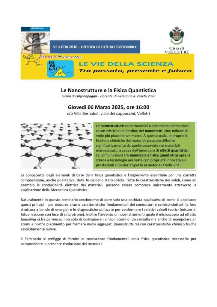 “Le Nanostrutture e la Fisica Quantistica” a Villa Bernabei con Velletri 2030