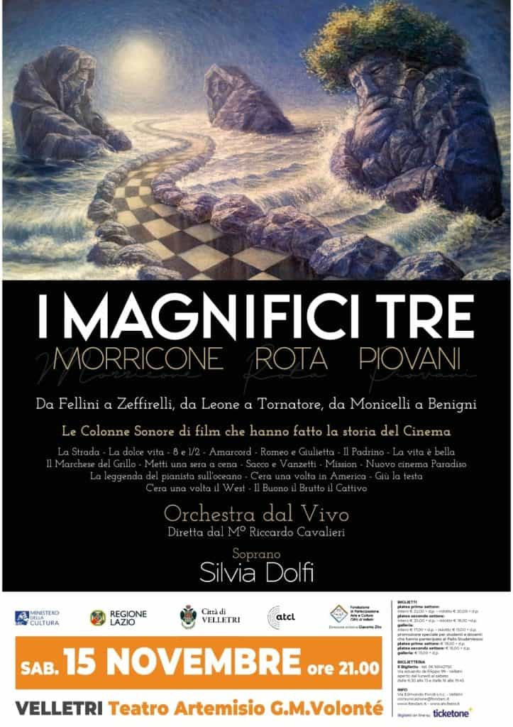 Velletri, al via la nuova stagione del Teatro Artemisio Volonté: si parte con “I Magnifici Tre – Morricone, Rota e Piovani”