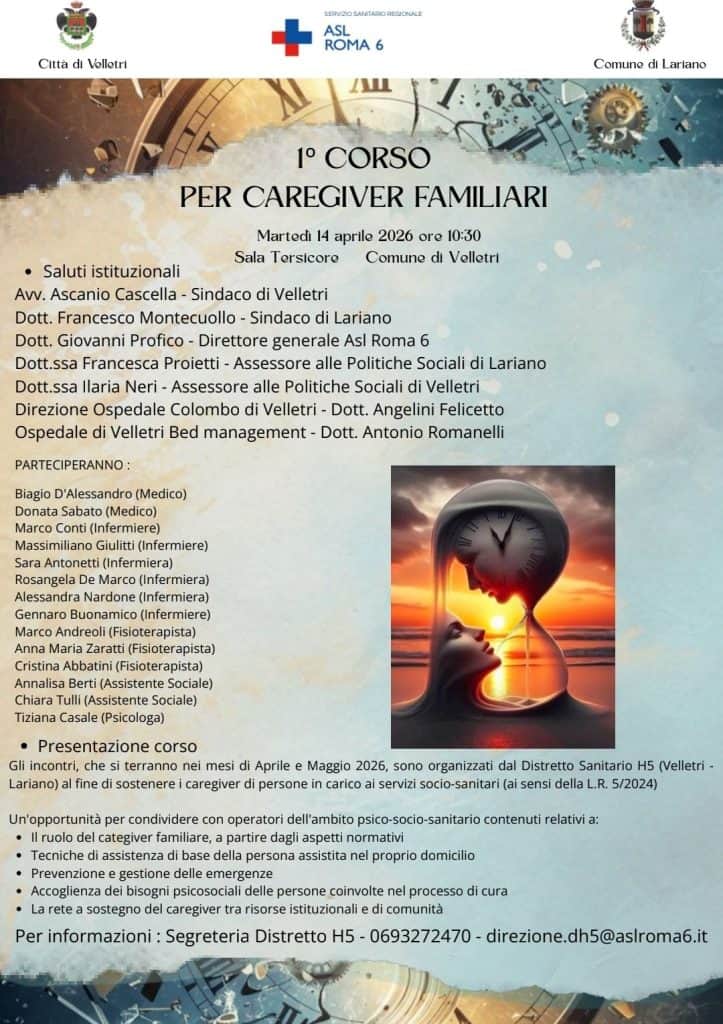 Per questo, la ASL Roma 6, in collaborazione con il Distretto Sanitario H5 e i Comuni di Velletri e Lariano, è orgogliosa di presentare il 1° Corso per Caregiver Familiari.Vogliamo essere al vostro fianco, offrendovi gli strumenti necessari per affrontare questo compito con maggiore serenità e competenza.