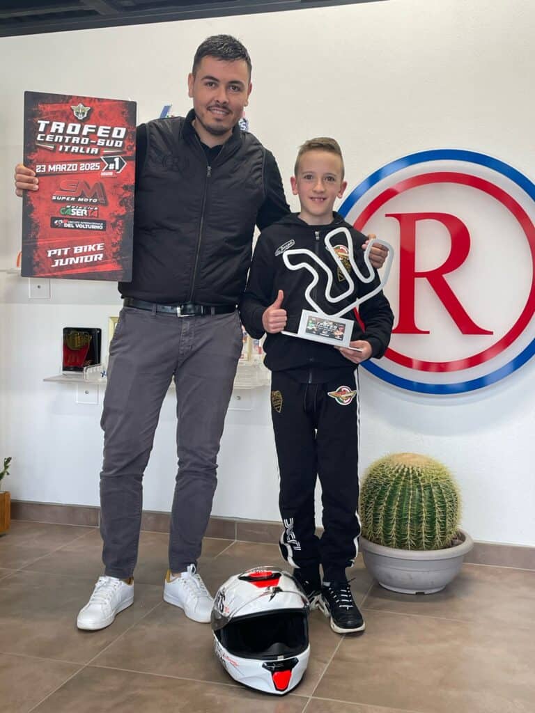 Nella foto, Alex è immortalato con il suo papà Paolo, un momento di grande emozione che rappresenta il loro legame speciale, e insieme ad Alessio Pizzurro, Direttore di PubbliR, che con orgoglio lo sostiene in questa avventura con il progetto PUBBLIR PER LO SPORT. Con un futuro luminoso davanti a sé, Alex Caponera è pronto a scrivere la sua storia nel mondo delle corse.