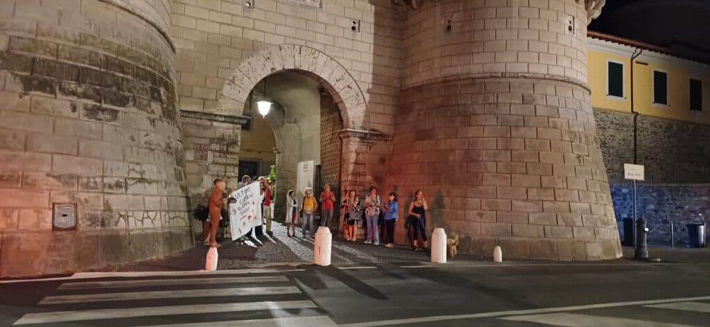 Domenica 27 luglio, alle 21:45, diversi cittadini si sono ritrovati a Porta Napoletana per un momento di silenziosa ma determinata partecipazione: “fare rumore” insieme per non restare complici con il silenzio, di fronte alla tragedia umanitaria che si sta consumando a Gaza.